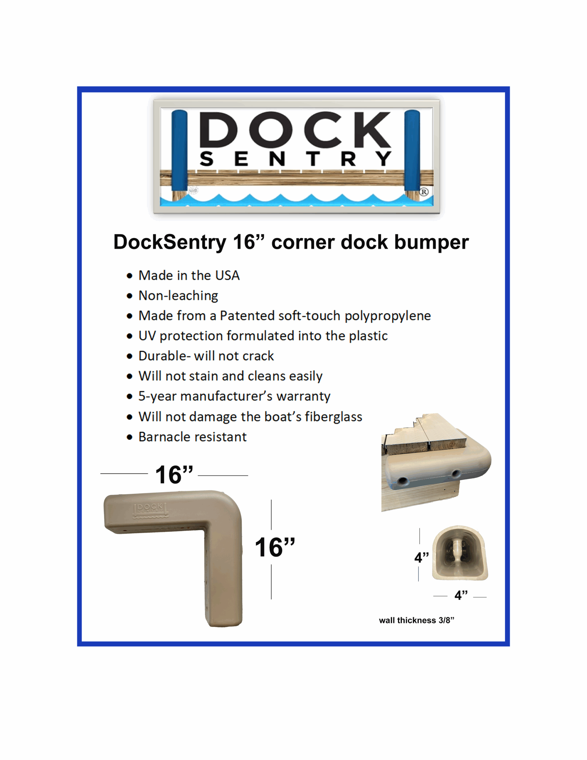 DockSentry Corner Dock Bumpers are a revolutionary new style of bumper for the exposed corner of the dock to protect your boat. They can be made available in multiple colors and will not only improve the look of your dock but will outlast the typical pointed black or white PVC products we are used to.