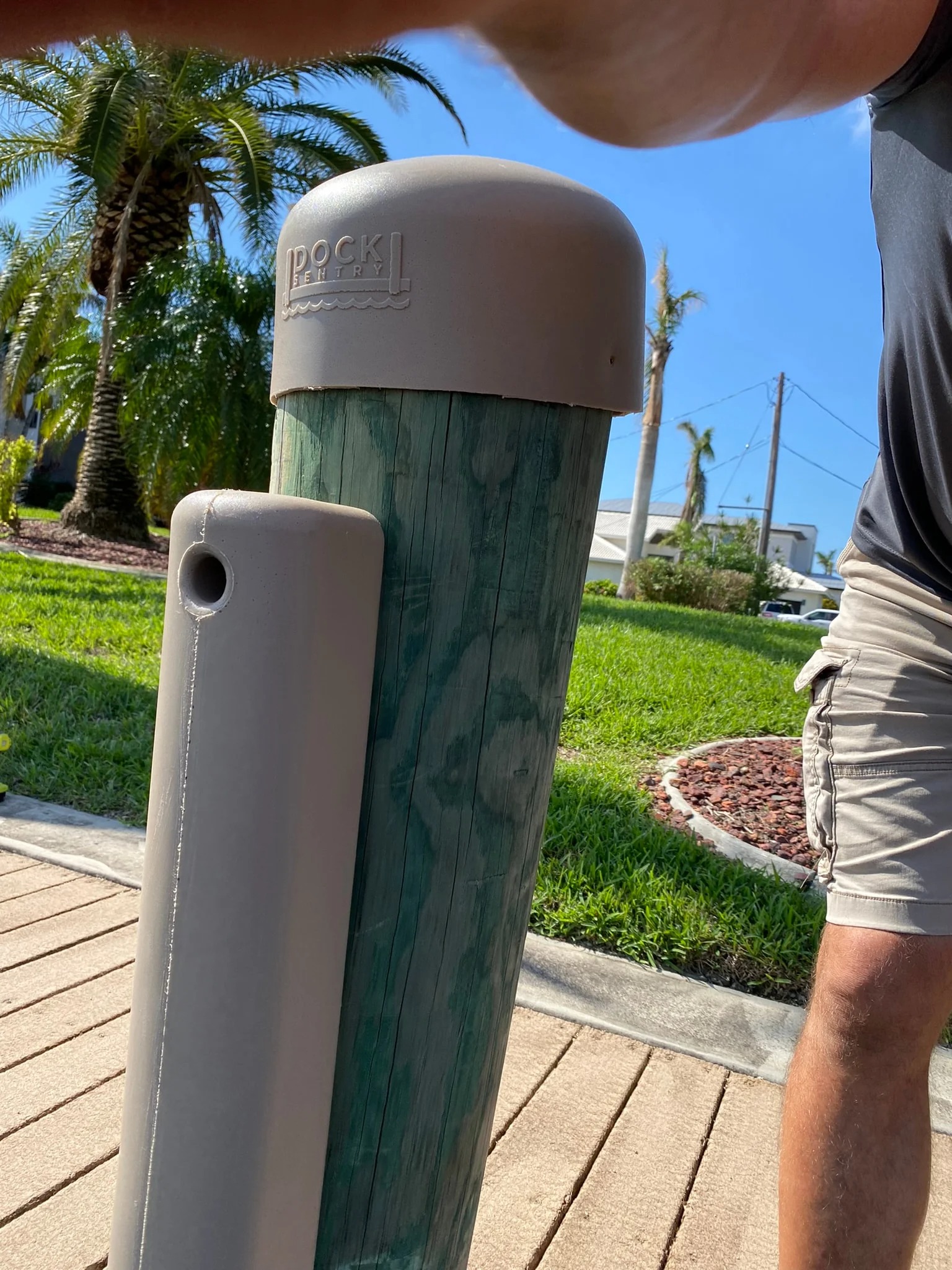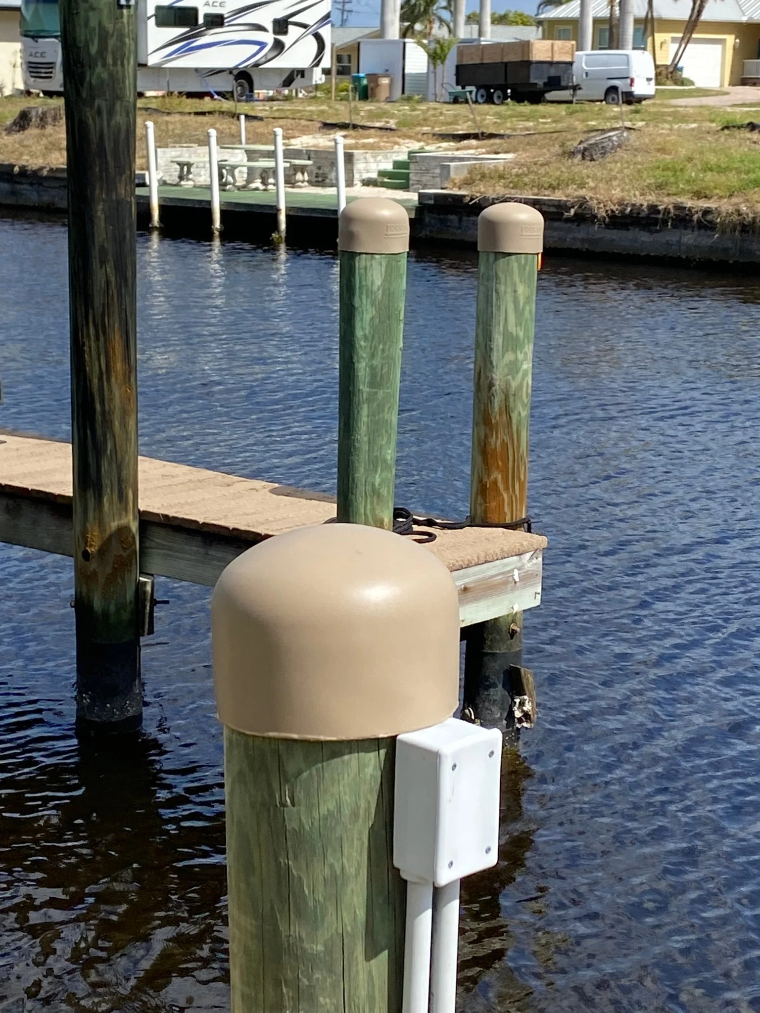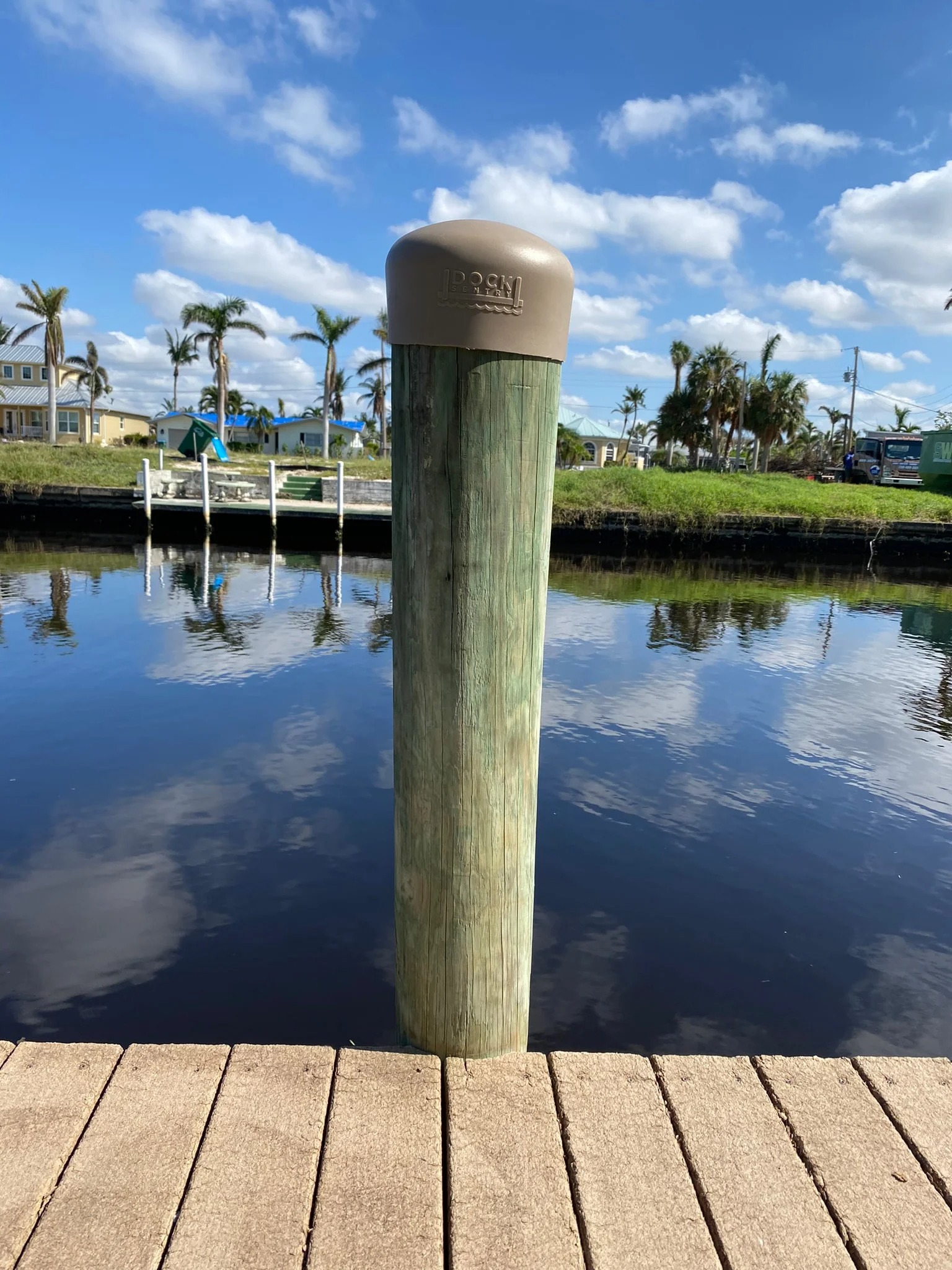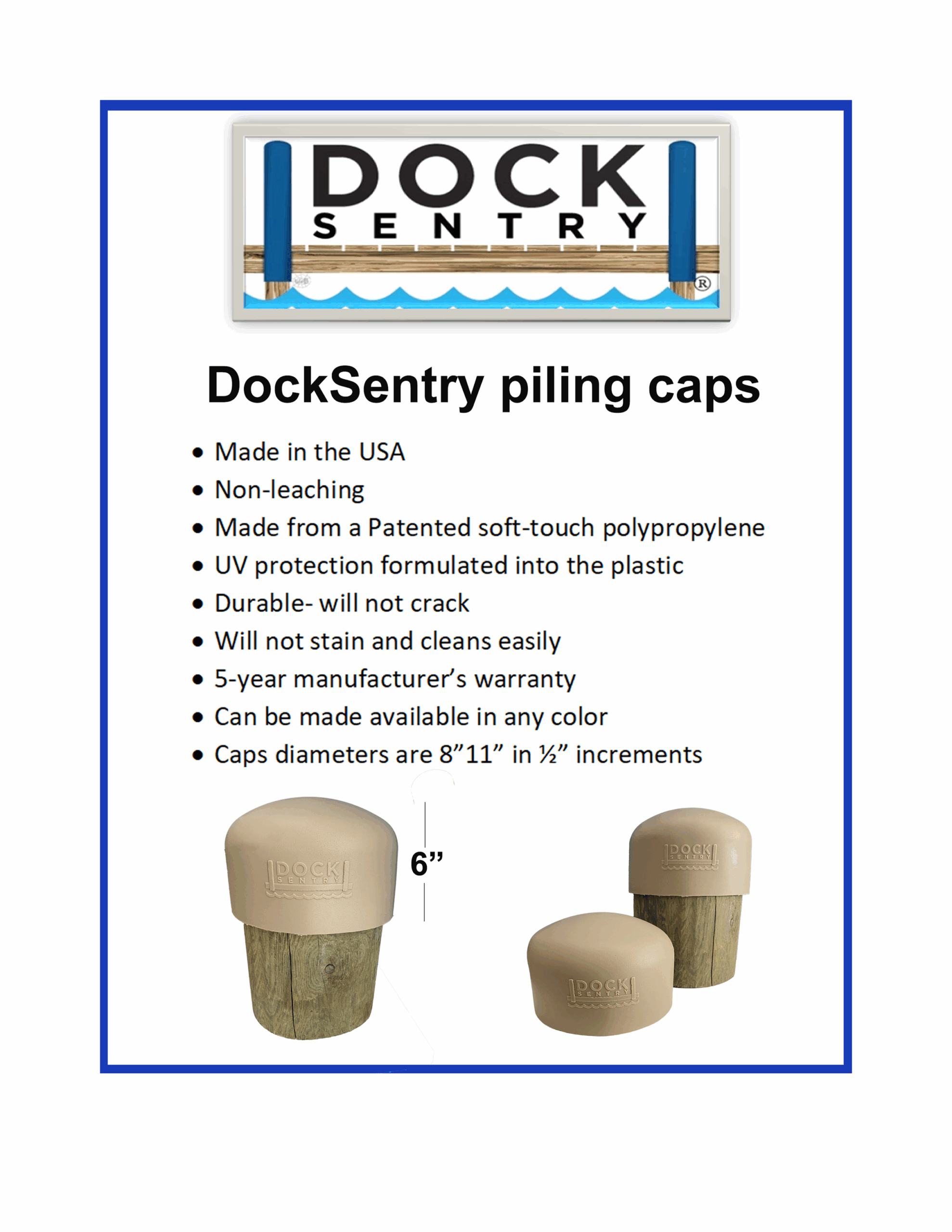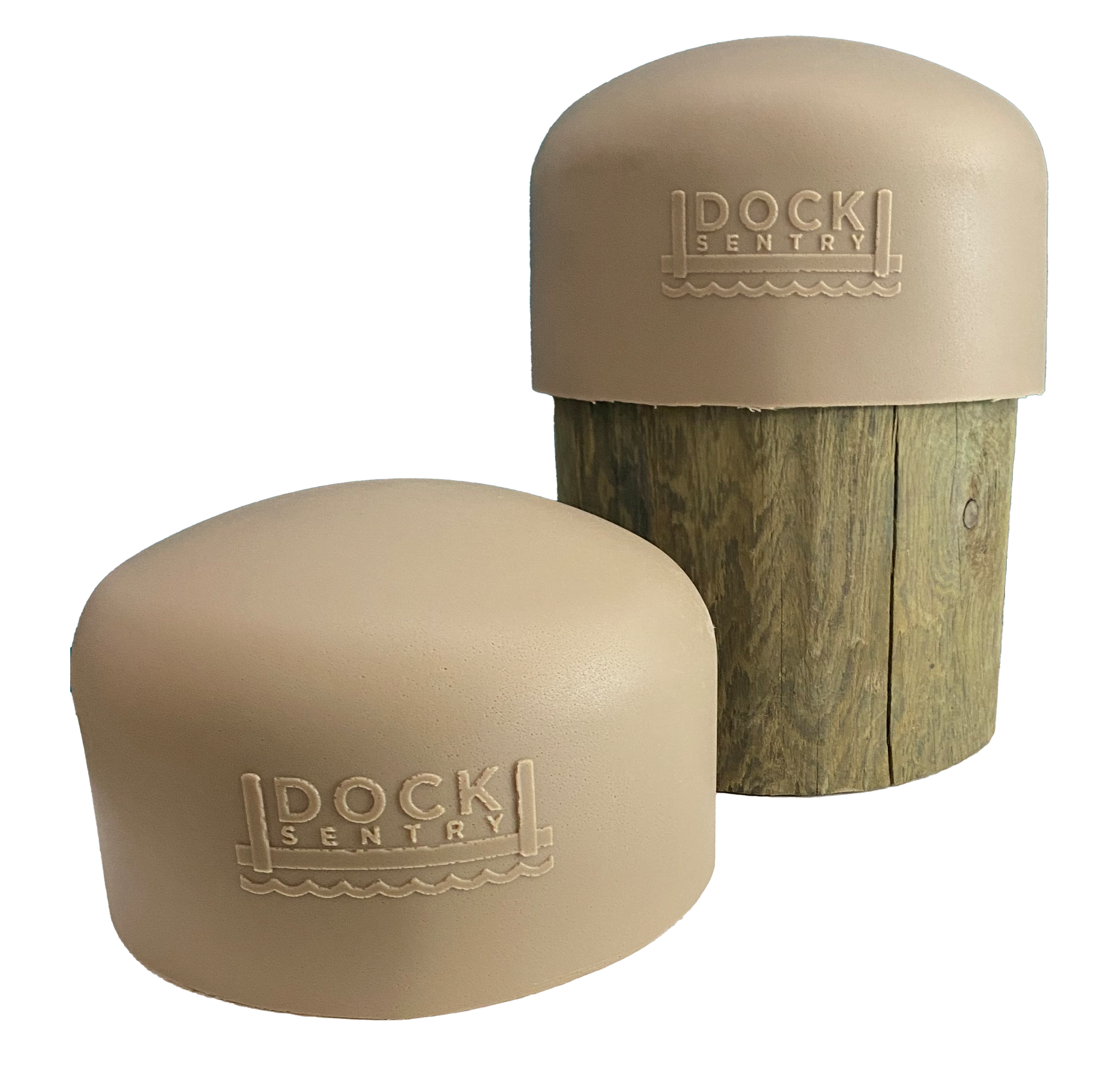 DockSentry Piling Caps are a revolutionary new cap for your dock pilings that can be made available in multiple colors and will not only improve the look of your dock but will outlast the typical pointed PVC caps we are all used to.